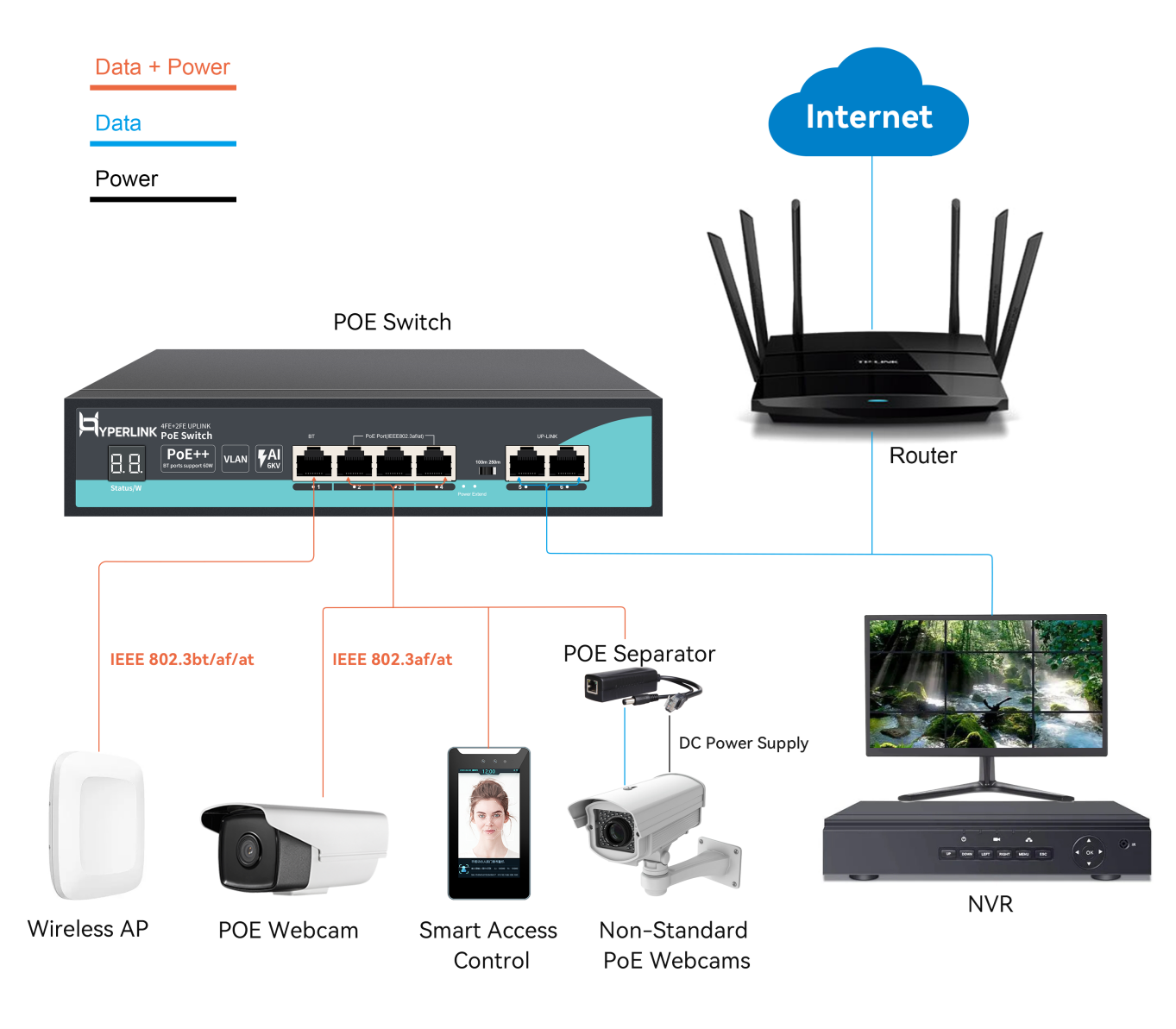 -ใช้สำหรับจ่ายไฟให้กับ กล้อง IP, Access Point, โทรศัพท์ IP, หรือ อุปกรณ์ IoT