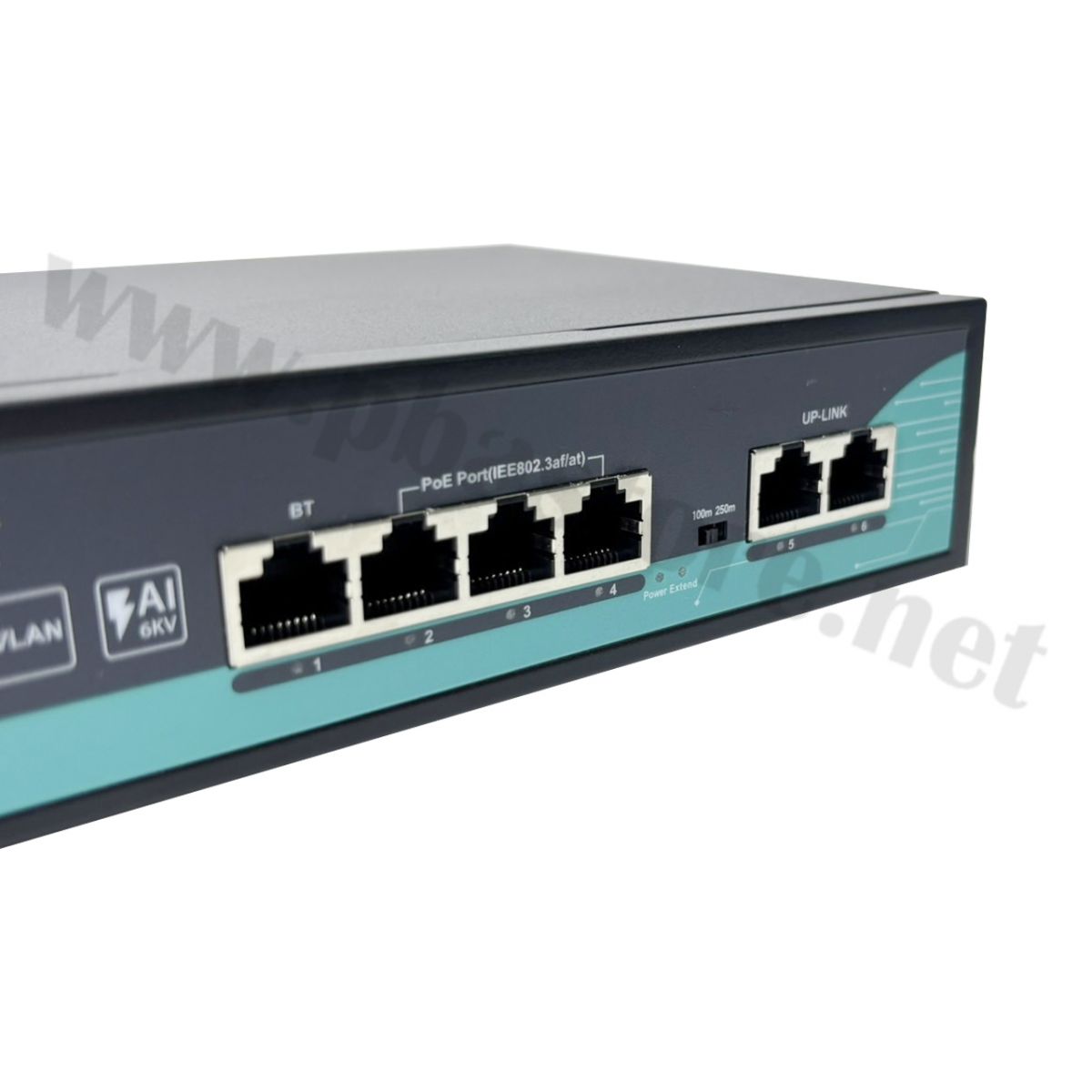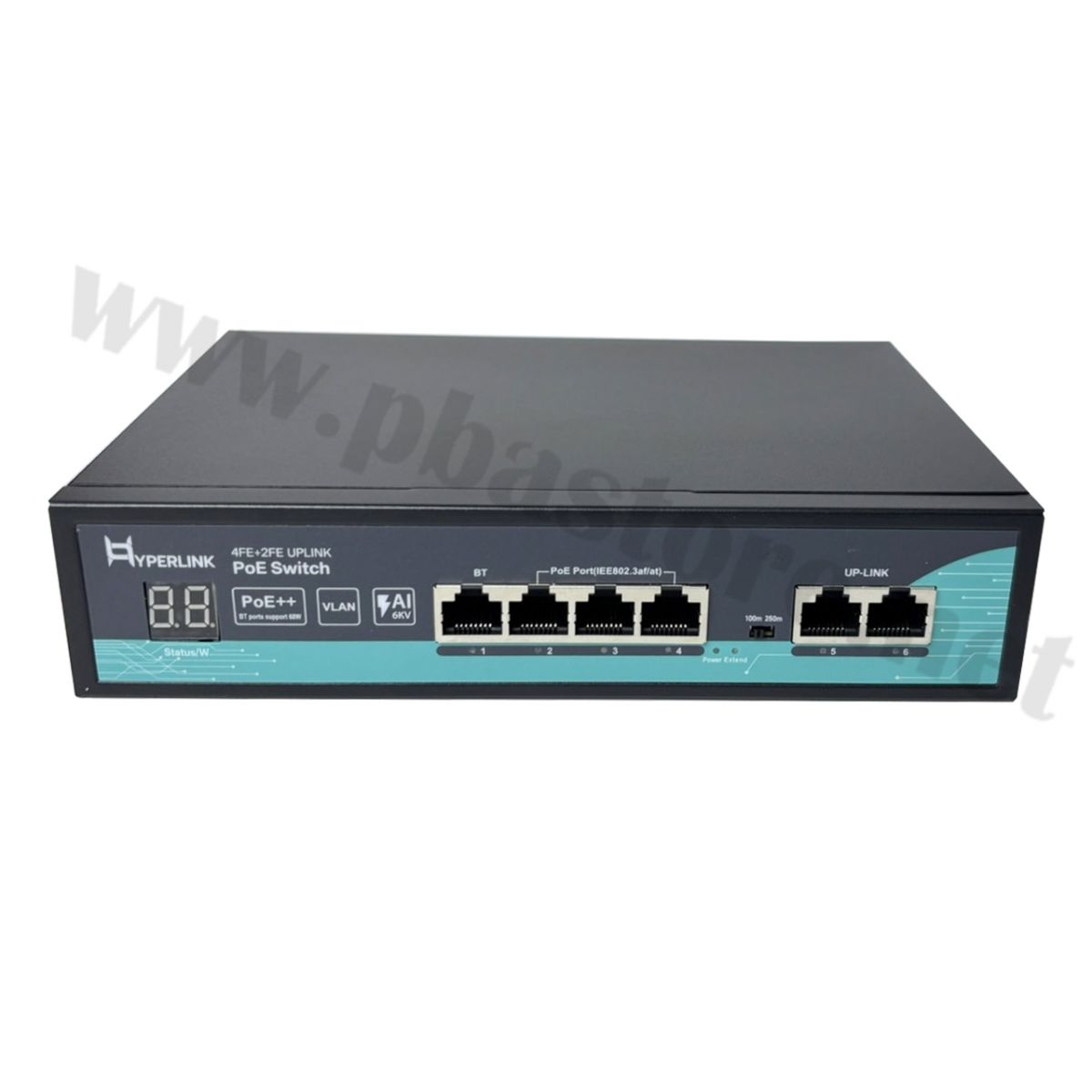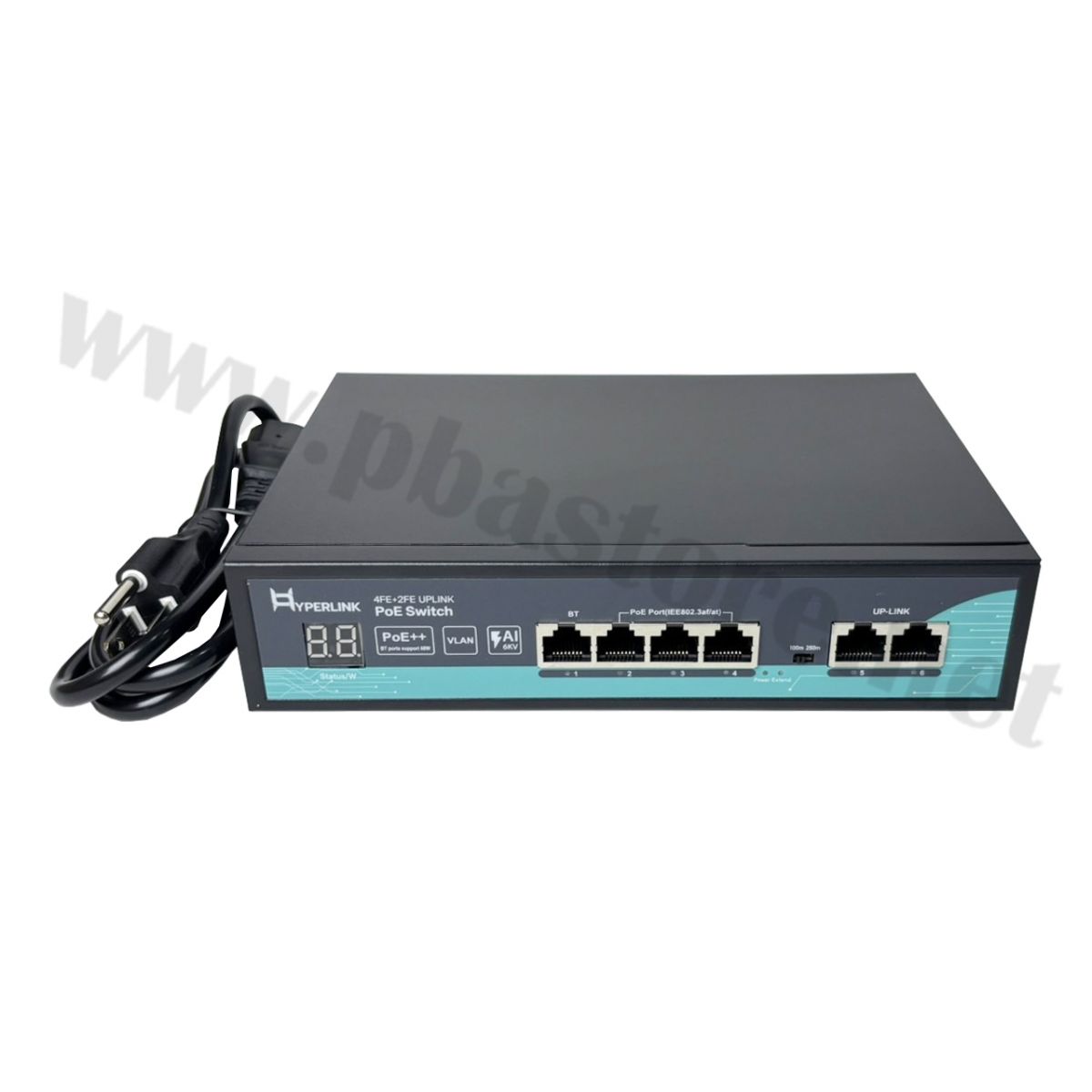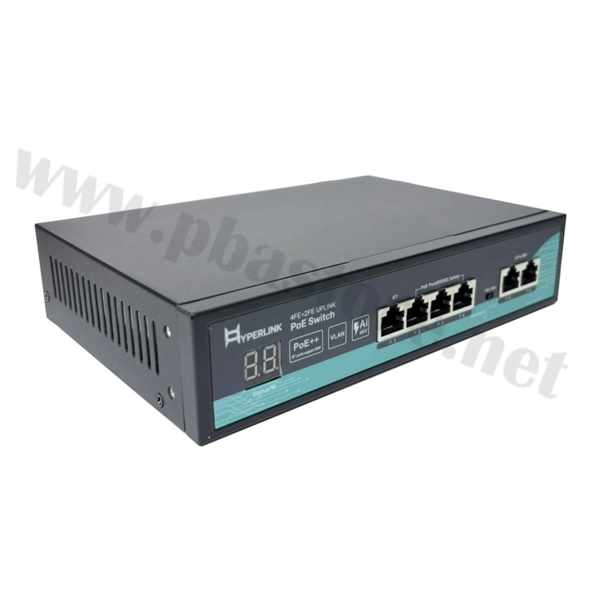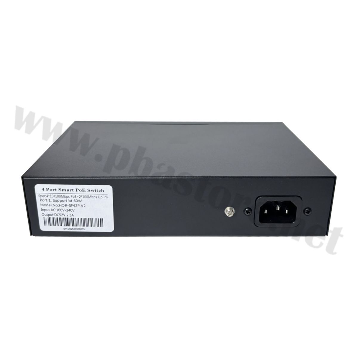 POE++ SWITCH 4CH + 2LAN Uplink 10/100M AF/AT/BT First Port up to 60W / VLAN With AI Surge protection 6KV Hyperlink รุ่น HOR-SF42P-V2 ราคา 690.00 .-