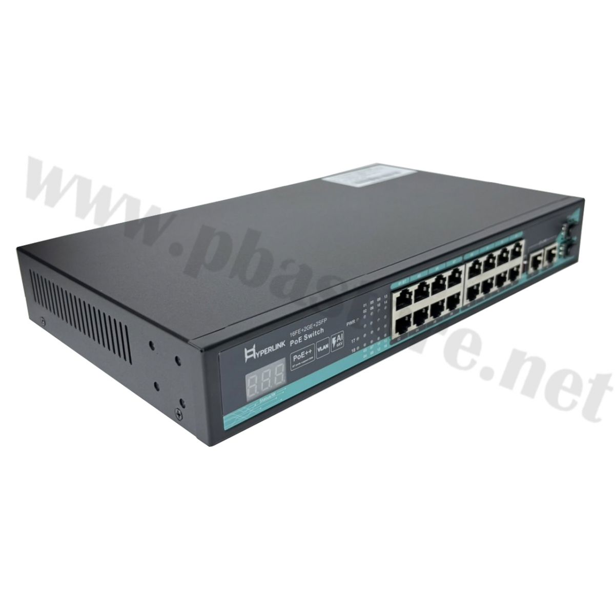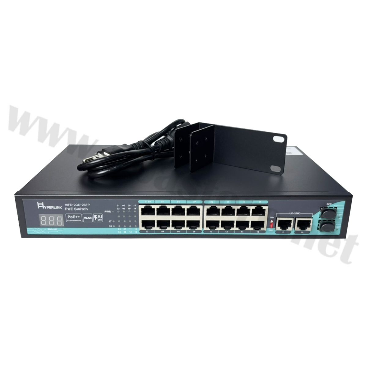 POE++ SWITCH 16CH 10/100M + 2LAN Uplink 10/100/1000M + 2SFP AF/AT/BT First Port up to 60W / VLAN With AI Surge protection 6KV Hyperlink รุ่น HOR-SL1622P-SFP-V2 สวิตช์ POE++ ราคา 2,990.00 .-