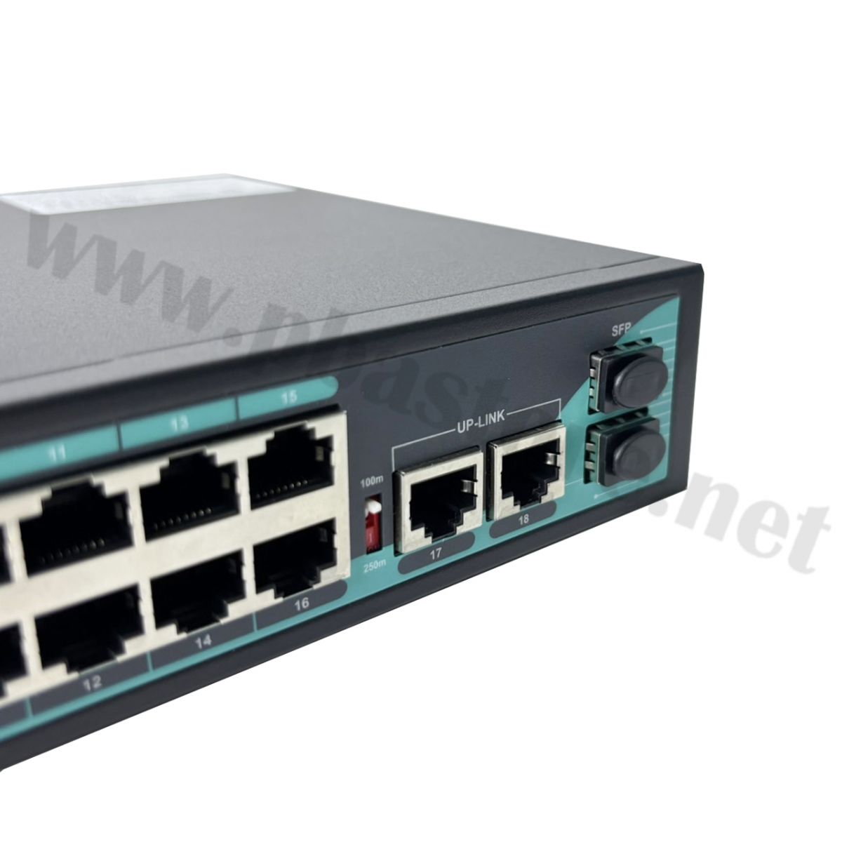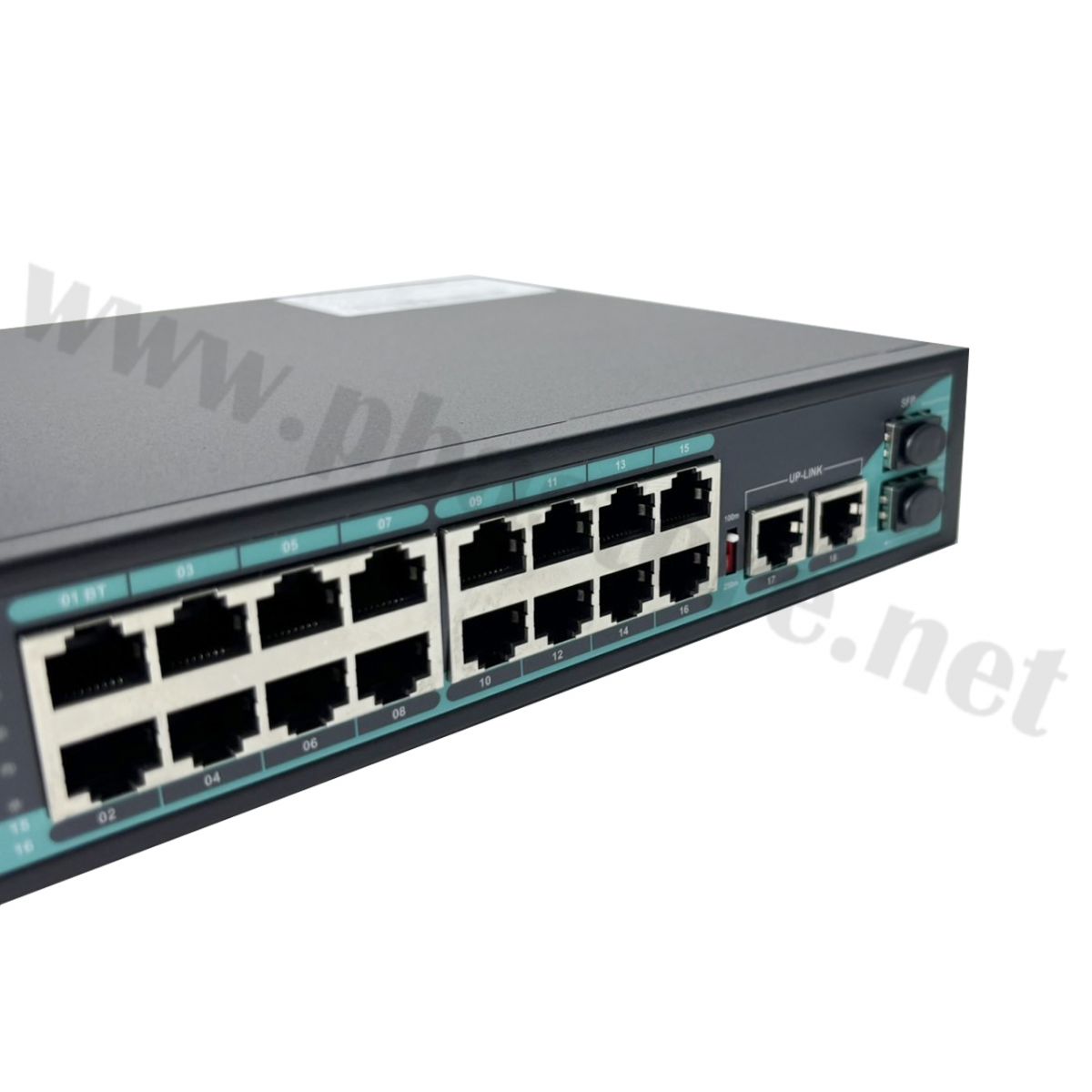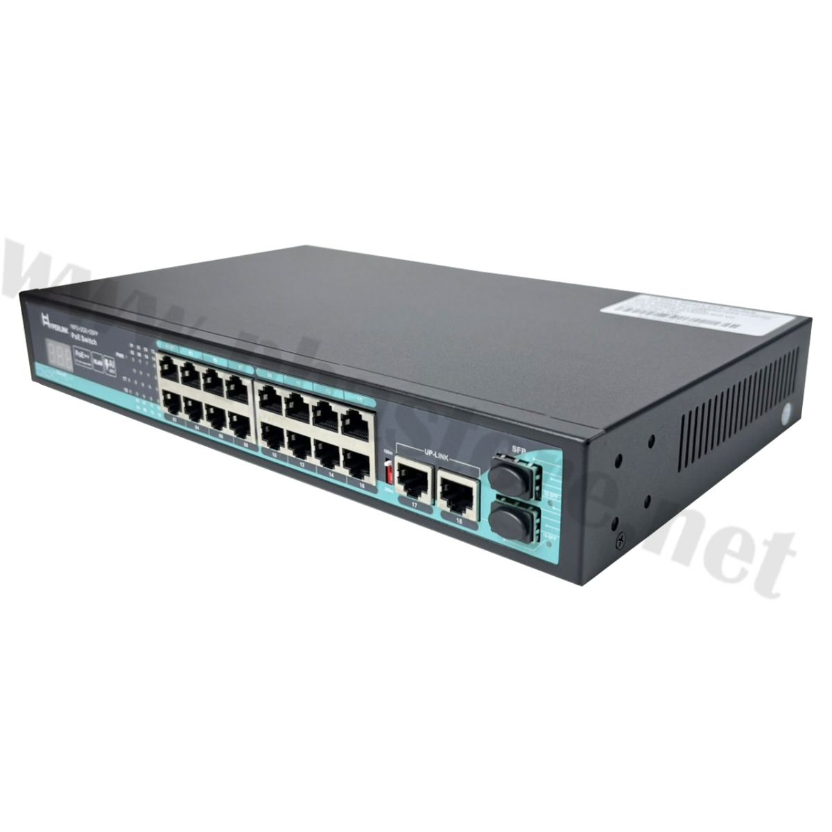POE++ SWITCH 16CH 10/100M + 2LAN Uplink 10/100/1000M + 2SFP AF/AT/BT First Port up to 60W / VLAN With AI Surge protection 6KV Hyperlink รุ่น HOR-SL1622P-SFP-V2 สวิตช์ POE++