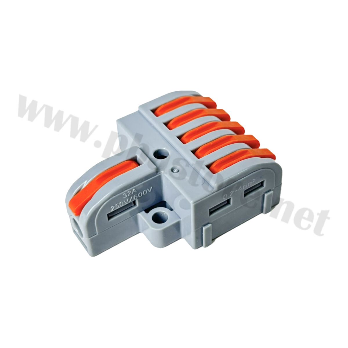 ขั้วสำหรับต่อสายไฟแบบ 1 ออก 5 ช่อง รองรับขนาดสาย 0.2-4mm² รุ่น LT-15 (1ตัว) ขั้วต่อสายไฟแบบ 1 ออก 5 ช่อง ออกแบบมาเพื่อความสะดวกในการเชื่อมต่อสายไฟหลายเส้นในจุดเดียว