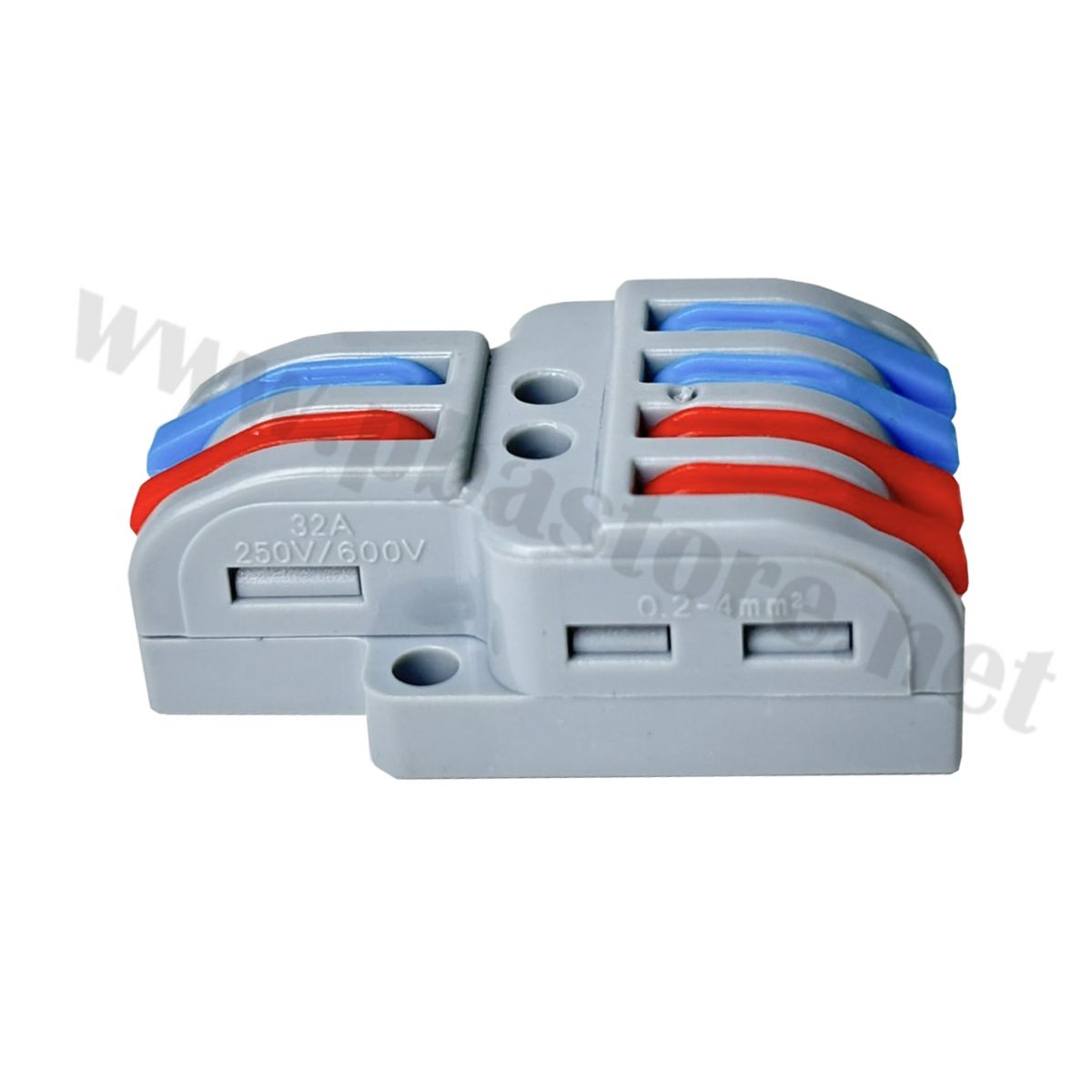 ขั้วสำหรับต่อสายไฟแบบ 2 ออก 4 ช่อง (2x2) รองรับขนาดสาย 0.2-4mm² รุ่น LT-422 (1ตัว) ออกแบบมาเพื่อการเชื่อมต่อสายไฟแบบ 2 เข้าสู่ 4 ช่อง รองรับสายไฟขนาด 0.2–4 mm²