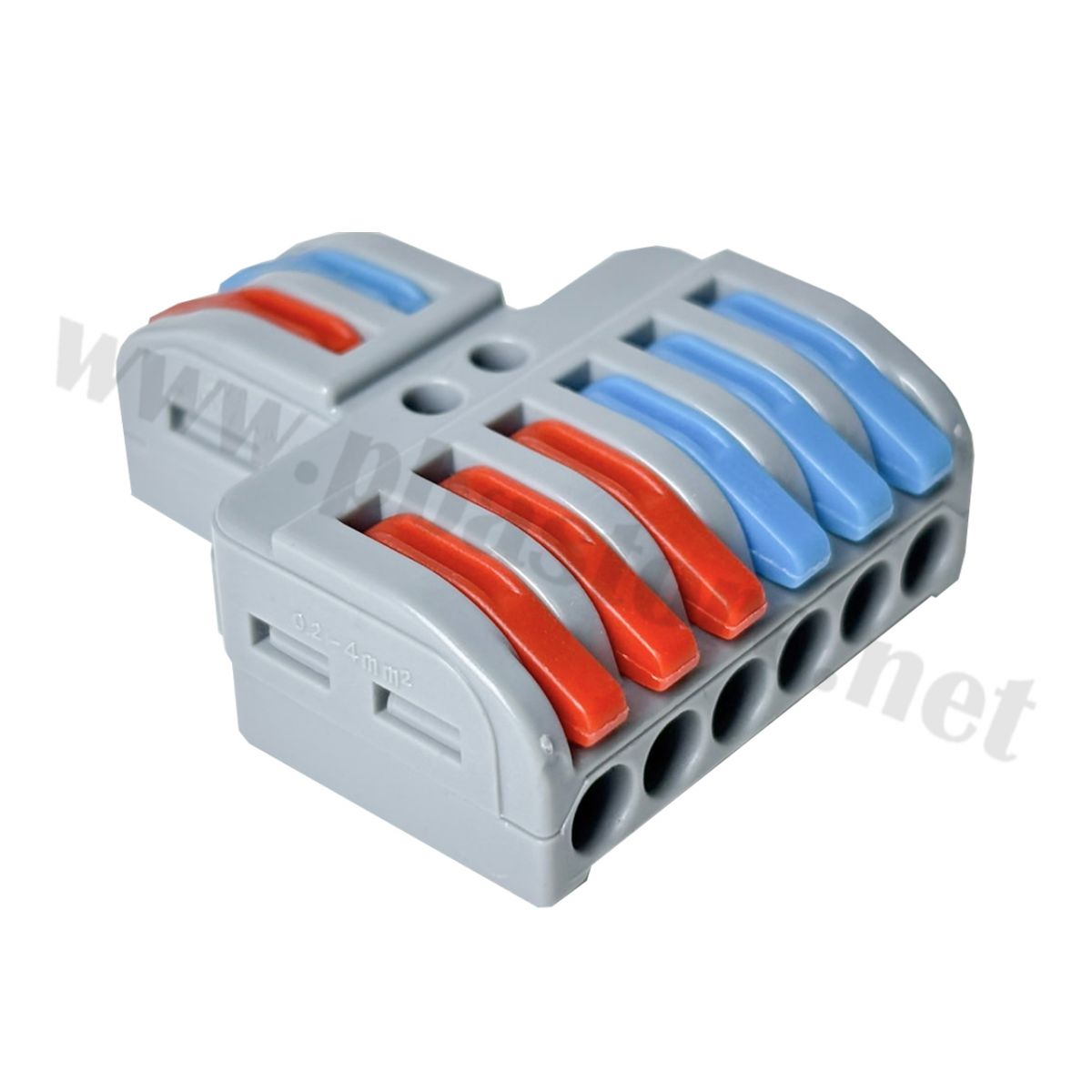 ขั้วสำหรับต่อสายไฟแบบ 2 ออก 6 ช่อง (2x3) รองรับขนาดสาย 0.2-4mm² รุ่น LT-623 (1ตัว) ออกแบบมาเพื่อการเชื่อมต่อสายไฟแบบ 2 เข้าสู่ 6 ช่อง รองรับสายไฟขนาด 0.2–4 mm²