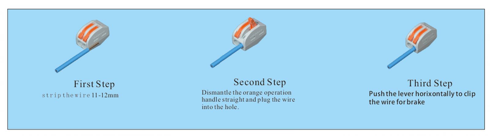 -ควรปอกฉนวนสายไฟตามมาตรฐาน (ประมาณ 9–11 มม.) ไม่ควรปอกยาวเกินไปเพราะอาจเสี่ยงต่อการลัดวงจร