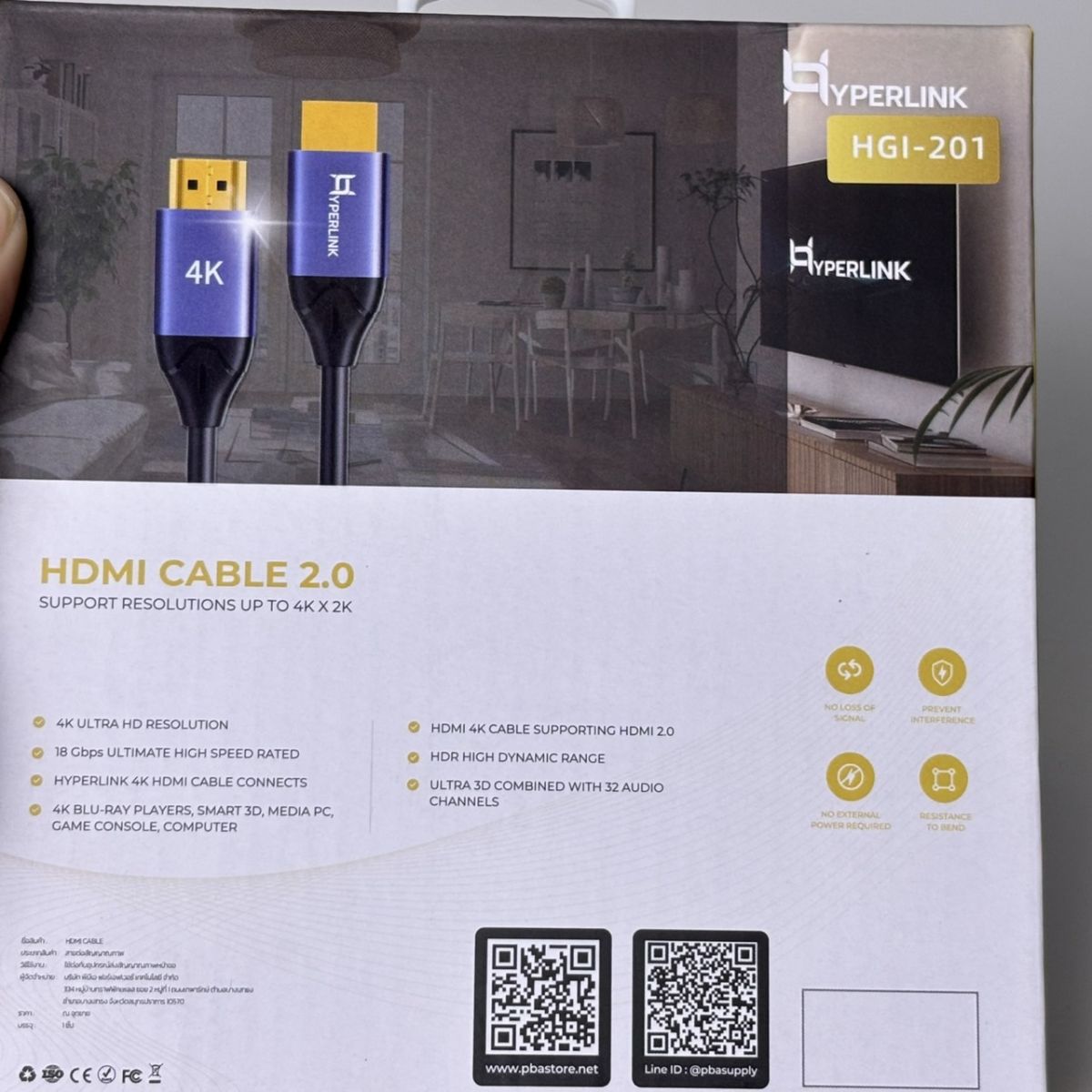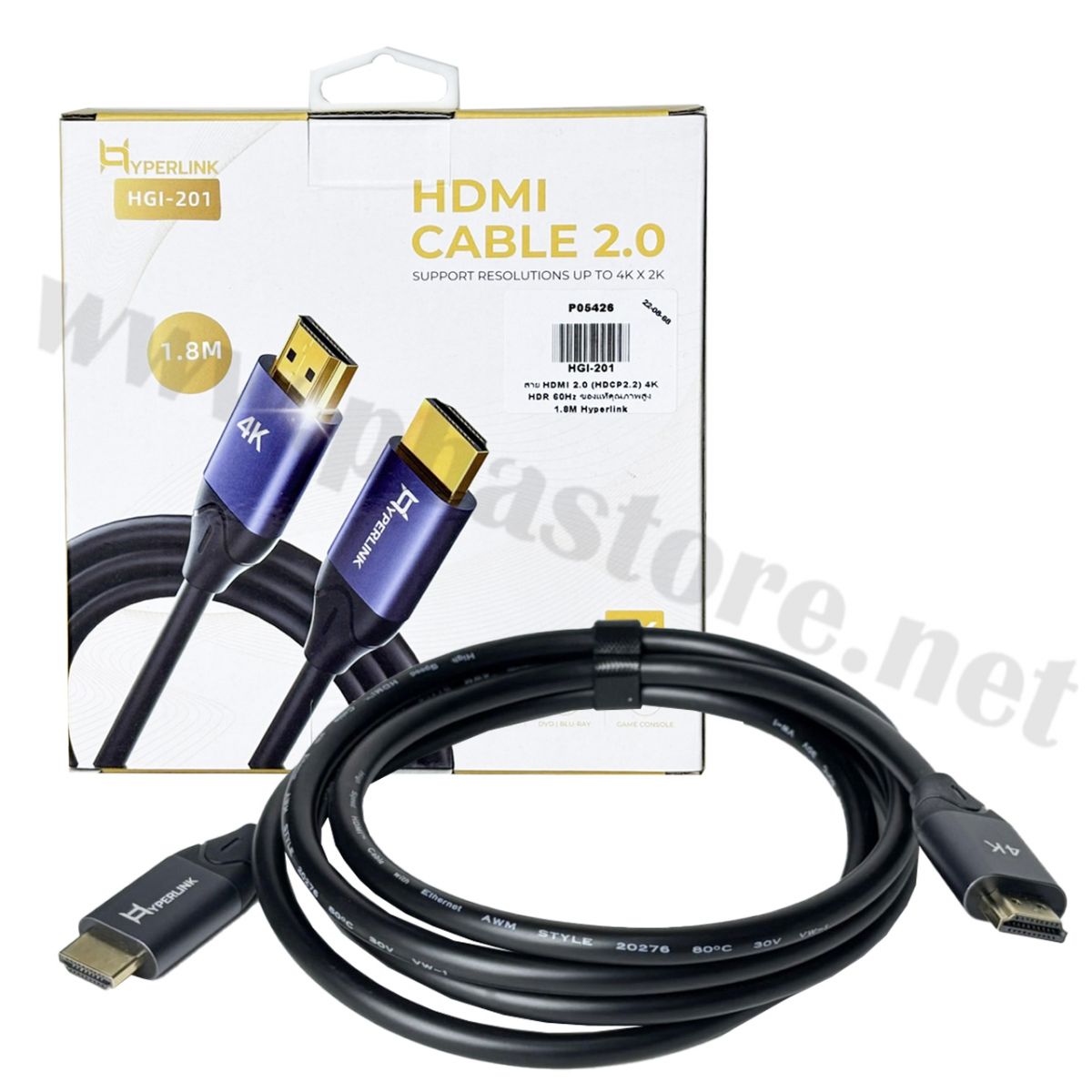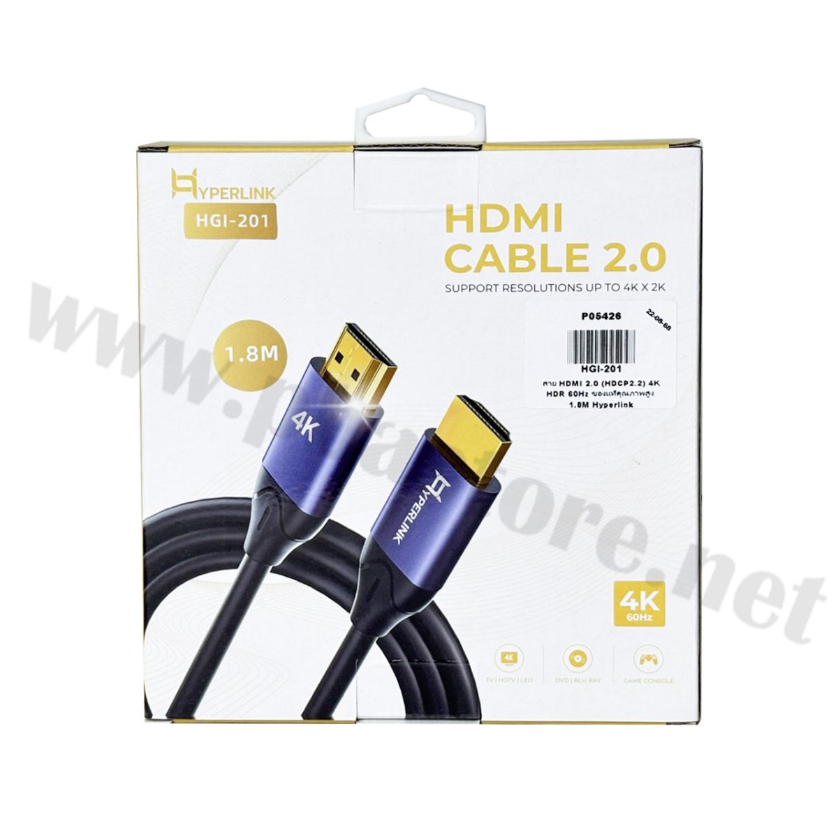 - สาย HDMI 2.0 Hyperlink รุ่น HGI-201 ความยาว 1.8 เมตร (1 ชิ้น)
