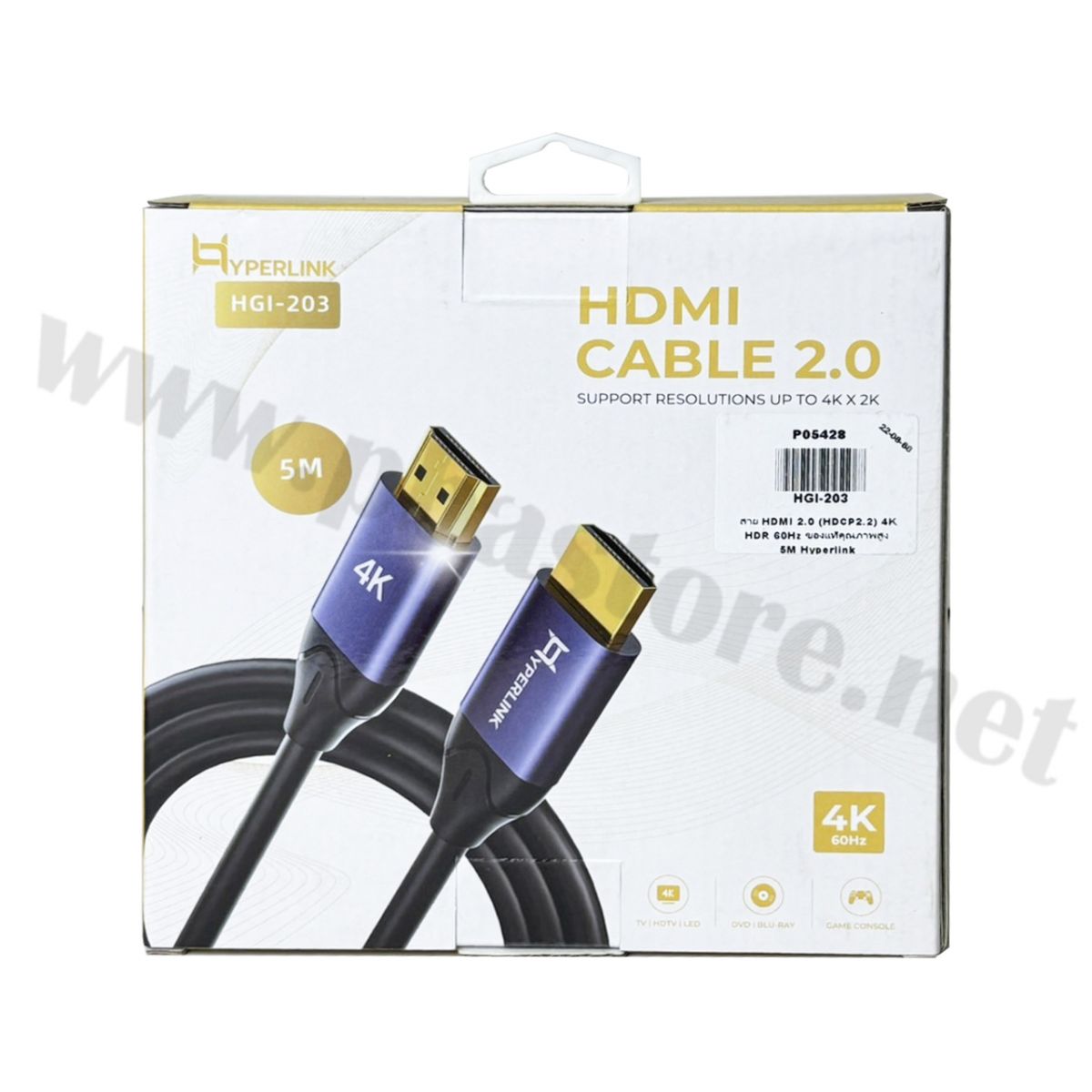 สาย HDMI 2.0 (HDCP2.2) 4K HDR 60Hz ของแท้คุณภาพสูง 5M Hyperlink รุ่น HGI-203 ออกแบบมาเพื่อการเชื่อมต่ออุปกรณ์มัลติมีเดียความละเอียดสูง ราคา 125.00 .-