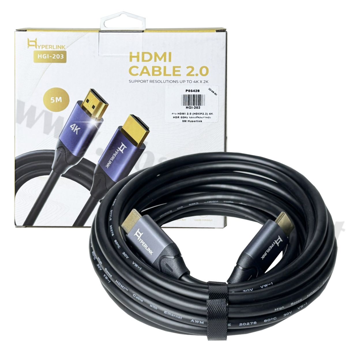 สาย HDMI 2.0 (HDCP2.2) 4K HDR 60Hz ของแท้คุณภาพสูง 5M Hyperlink รุ่น HGI-203 ออกแบบมาเพื่อการเชื่อมต่ออุปกรณ์มัลติมีเดียความละเอียดสูง