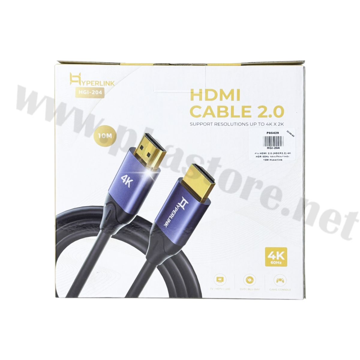 - สาย HDMI 2.0 (HDCP2.2) 4K HDR 60Hz ของแท้คุณภาพสูง 10M Hyperlink รุ่น HGI-204 จำนวน 1 เส้น