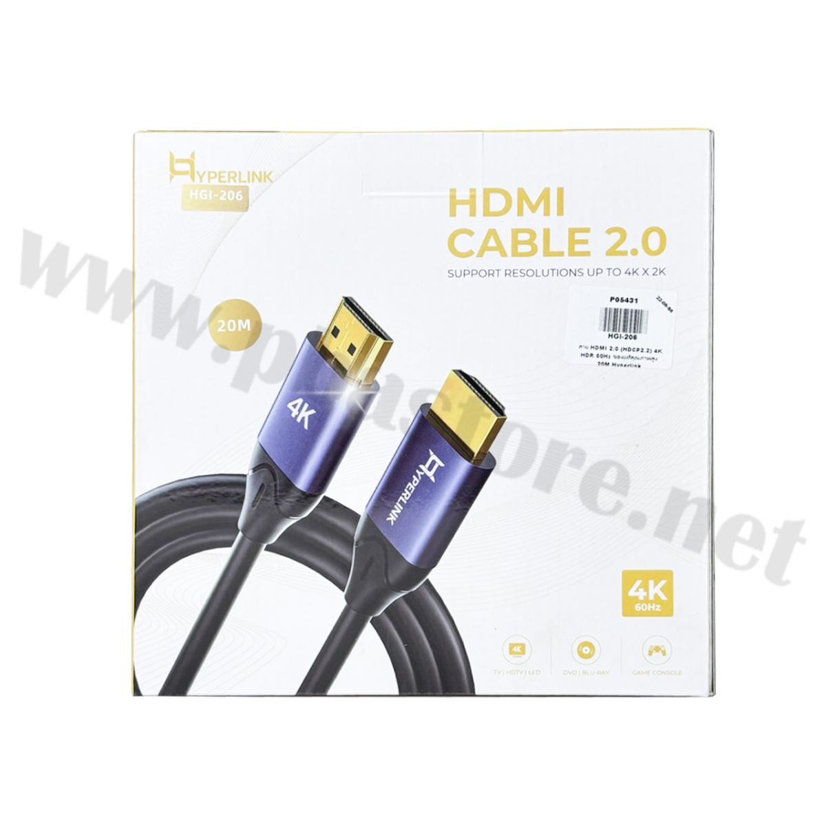 สาย HDMI 2.0 (HDCP2.2) 4K HDR 60Hz ของแท้คุณภาพสูง 20M Hyperlink รุ่น HGI-206 รองรับสัญญาณ 4K HDR 60Hz พร้อม HDCP 2.2