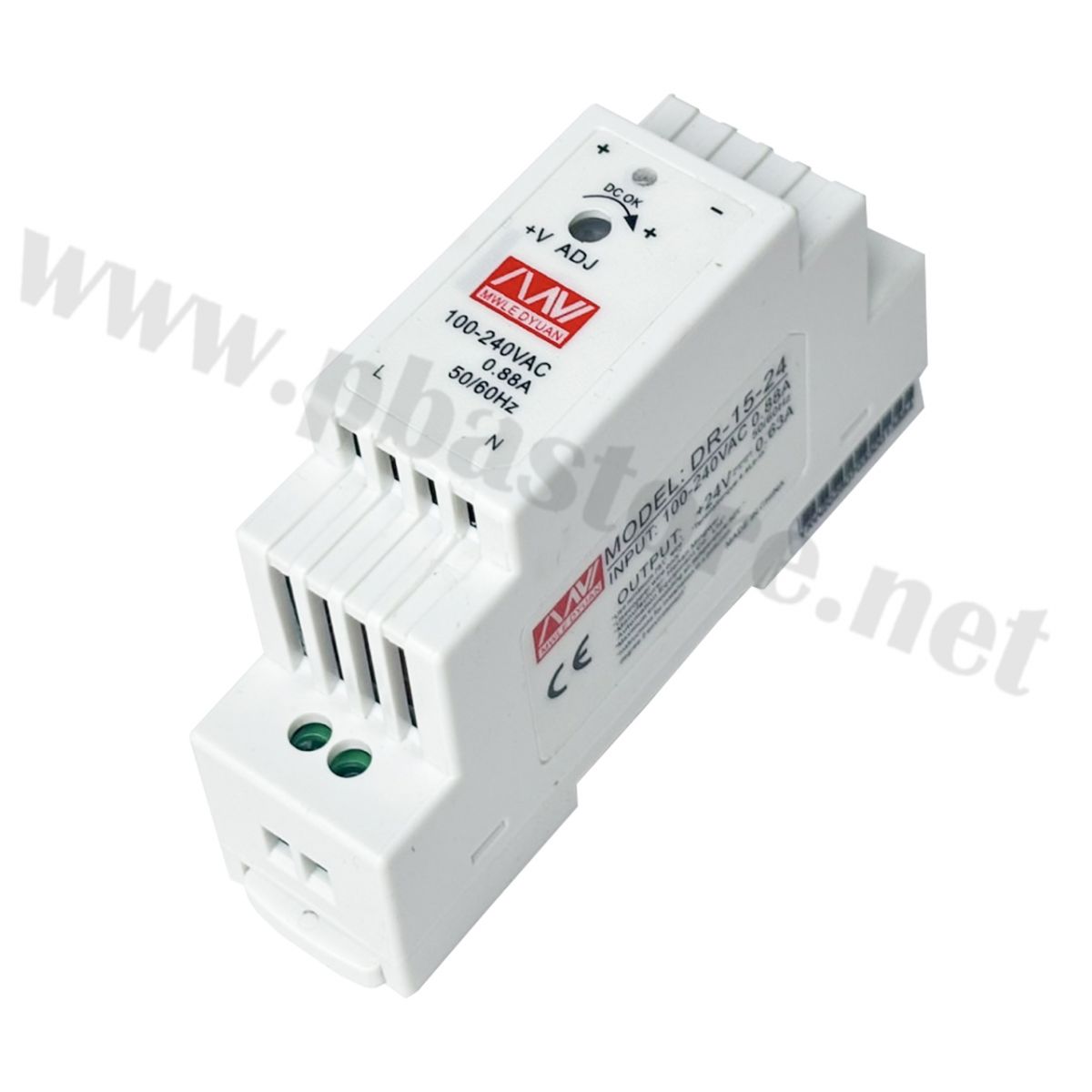 Industrial Power Supply M_DR-15-24 24V 15W 0.63A (Rail Type) เป็นแหล่งจ่ายไฟอุตสาหกรรมชนิดติดราง DIN (Rail Type) ให้แรงดันคงที่ 24V กำลังไฟ 15W กระแสสูงสุด 0.63A