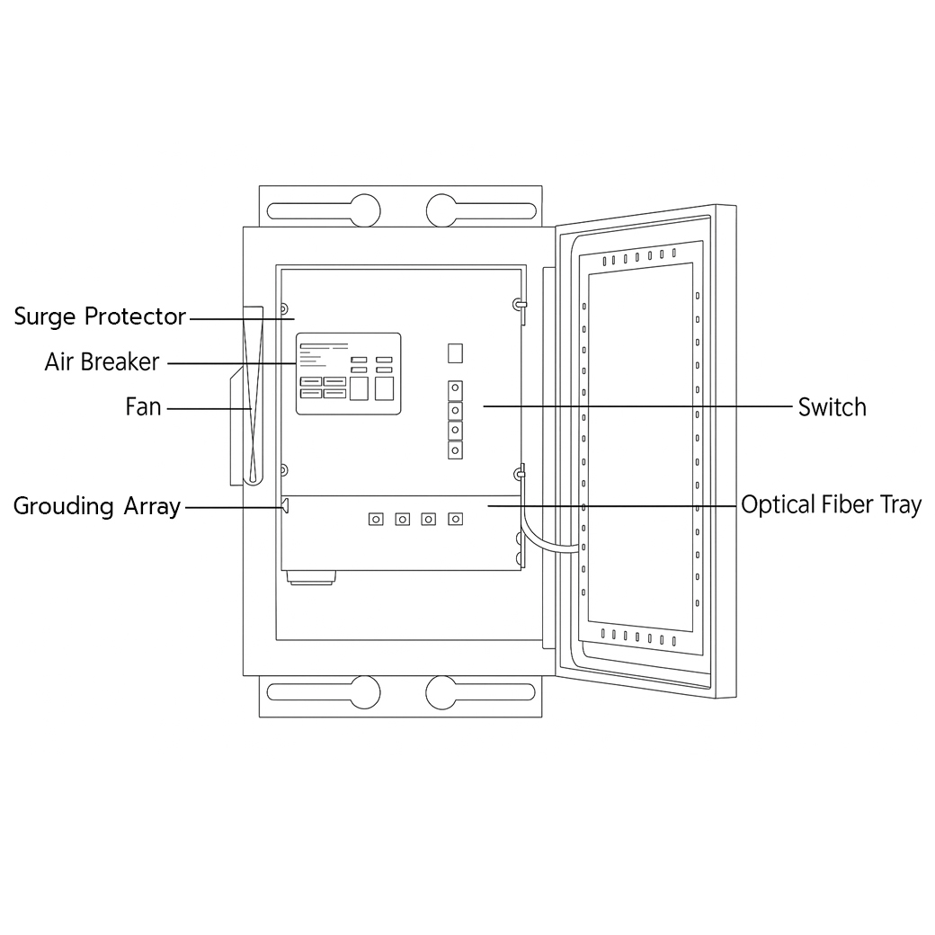 1.ติดตั้งตู้ในตำแหน่งที่ต้องการ เช่น เสาไฟ พื้นที่กลางแจ้ง หรือผนังอาคาร