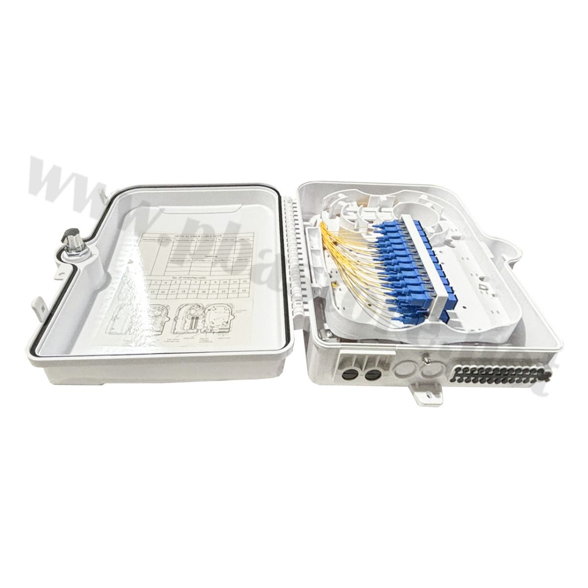 Tags: กล่องพักสายไฟเบอร์, 24Core, FiberOptic, DistributionBox, SCUPC, FTTH, อุปกรณ์ไฟเบอร์ออฟติก, กล่องกันน้ำ, Pigtail, Adapter, โครงข่ายสื่อสาร, งานติดตั้งCCTV, ระบบเน็ตเวิร์ค, ตู้พักสายไฟเบอร์, สำเร็จรูปพร้อมใช้
