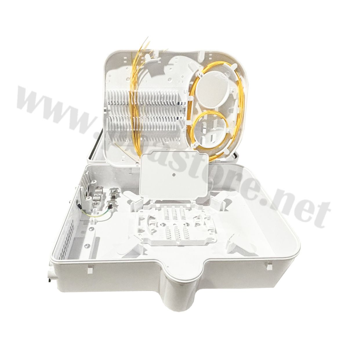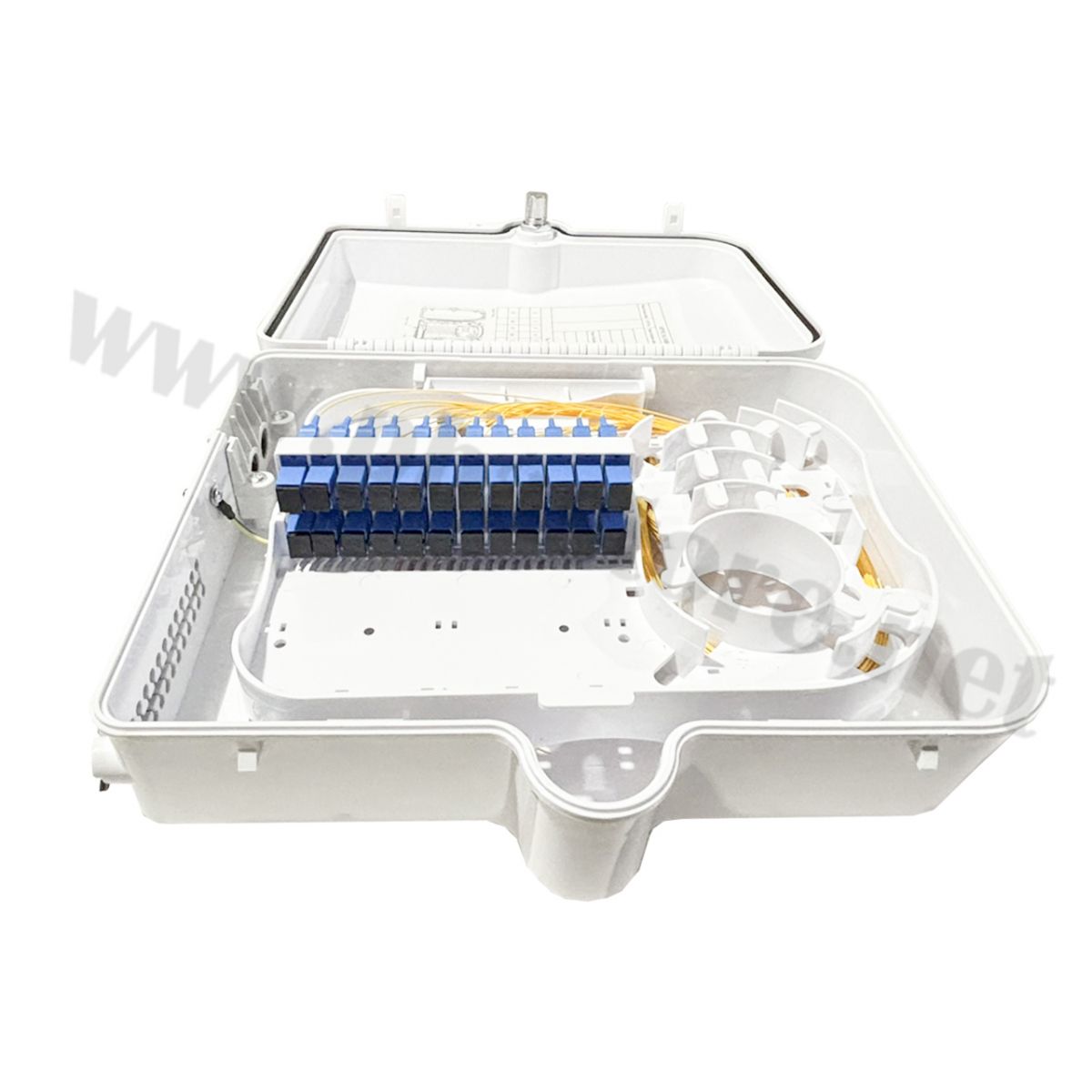 - ถาดสไปลซ์ (Splice Tray): มีถาดสำหรับเก็บรอยสไปลซ์และจัดระเบียบสาย Pigtail แบบพับได้ ทำให้ซ่อมบำรุงง่าย