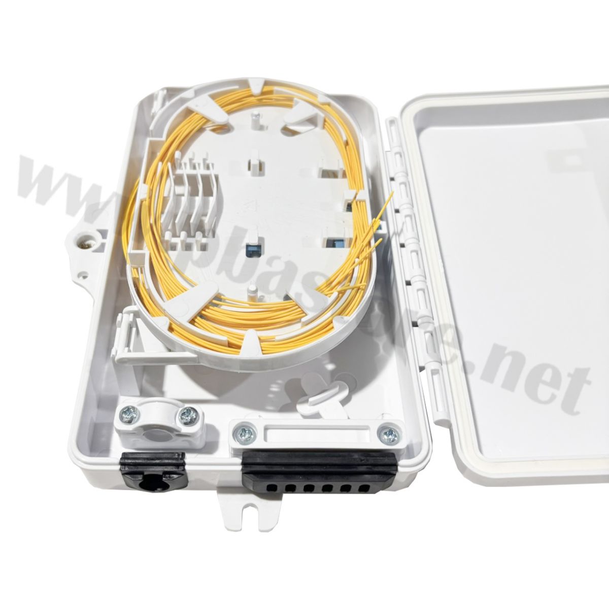 กล่องเก็บสายไฟเบอร์สำเร็ปรูป 6Core - 12Core Duplex LC/UPC พร้อมอุปกรณ์ Adapter With Pigtail Distribution Box Outdoor กันน้ำ ออกแบบมาเพื่อเป็นจุดเชื่อมต่อและกระจายสัญญาณแสงจากสายหลัก (Feeder Cable) ไปยังสายย่อย (Drop Cable) ตัวกล่องมีความทนทานสูง