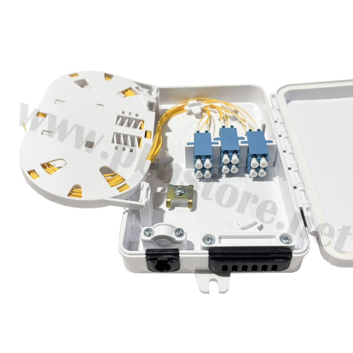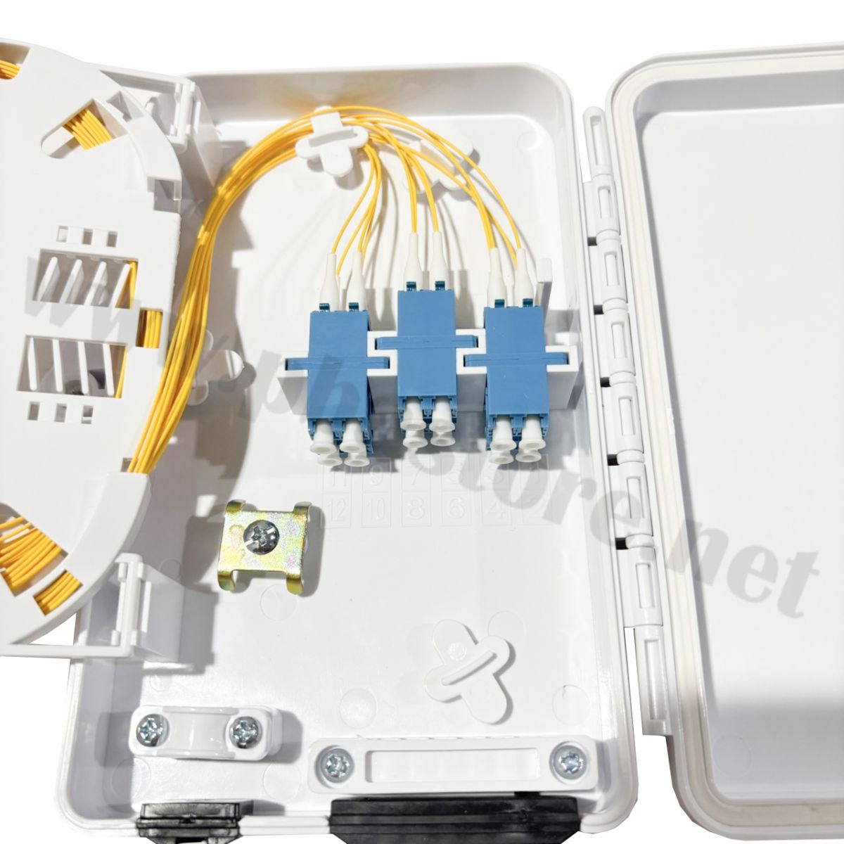 กล่องเก็บสายไฟเบอร์สำเร็ปรูป 6Core - 12Core Duplex LC/UPC พร้อมอุปกรณ์ Adapter With Pigtail Distribution Box Outdoor กันน้ำ ออกแบบมาเพื่อเป็นจุดเชื่อมต่อและกระจายสัญญาณแสงจากสายหลัก (Feeder Cable) ไปยังสายย่อย (Drop Cable) ราคา 320.00 .-