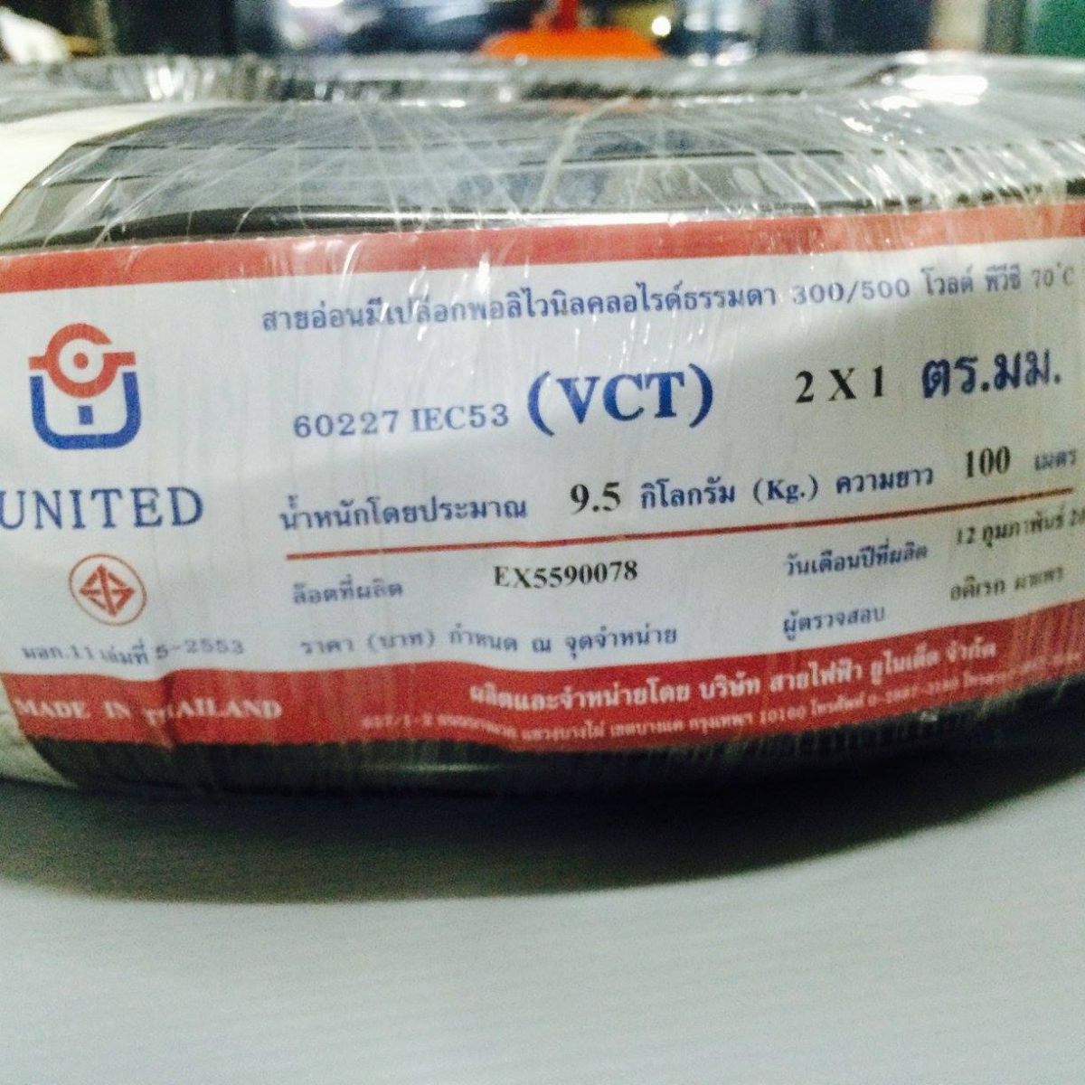 【สายไฟVCT ยี้ห้อUNITED สายอ่อนทีเปลือกพอลิไวนิลคลอไรด์ธรรมดา 300/500โวลต์ พีวีซี】