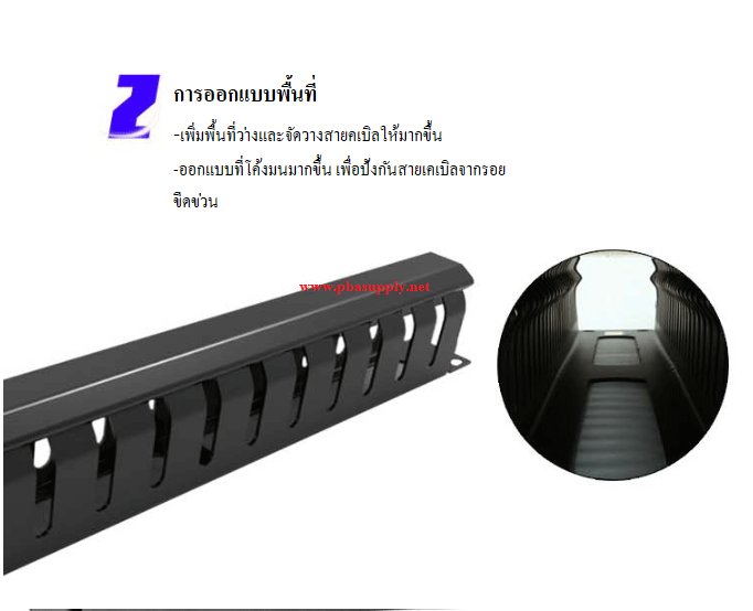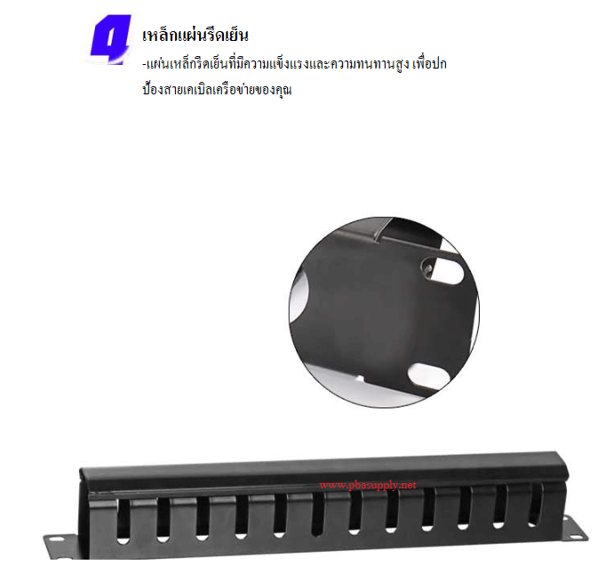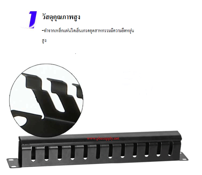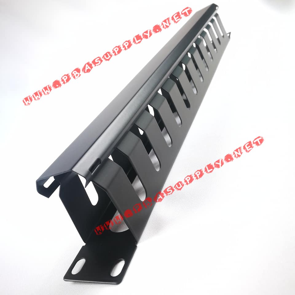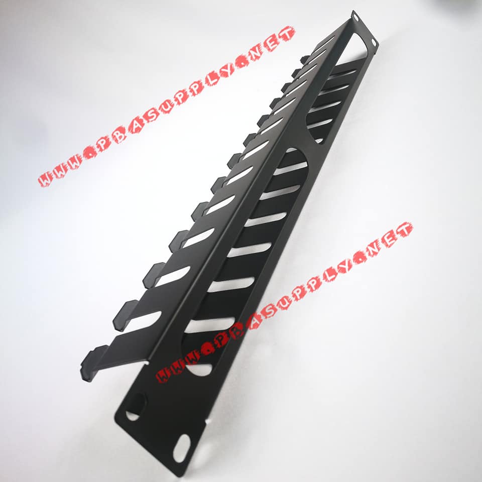 สำหรับจัดเก็บสายนำสัญญาณ บริเวณหน้าตู้แร็ค ให้ความสวยงาม และเรียบร้อย ติดตั้งขนาด 1U Rack Mountable แผงสำหรับจัดเก็บสายแลน สายไฟเบอร์ออฟติก หรือสายไฟอื่นๆ ตัวอุปกรณ์ผลิตจากวัสดุโลหะ ขึ้นรูปสวยงาม คุณภาพดี ใส่ตู้ 19" สีดำ
