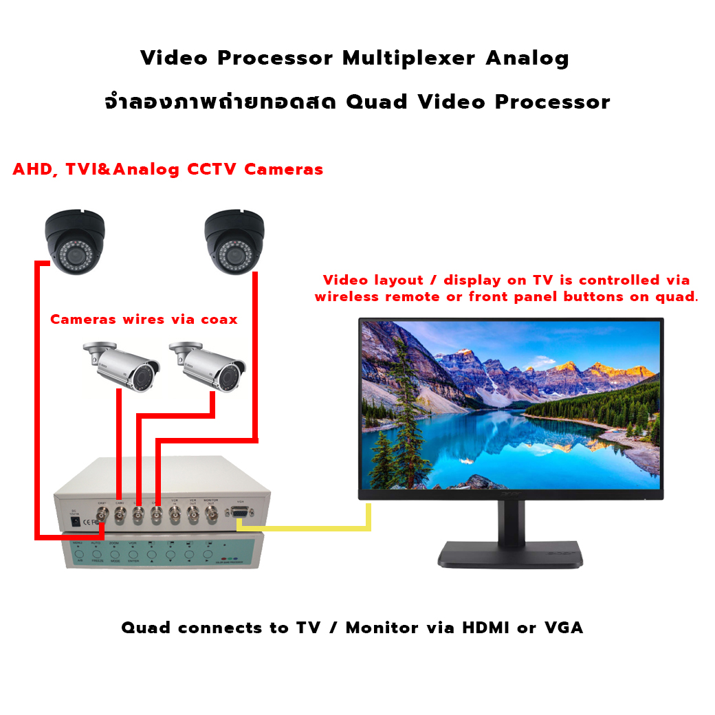 Video Processor จำลองภาพถ่ายทอดสด กล้องAnalog เข้า 8chออก1ch ใน1จอแบบมีรีโมตคอนโทรล ราคา 1,900.00 .-