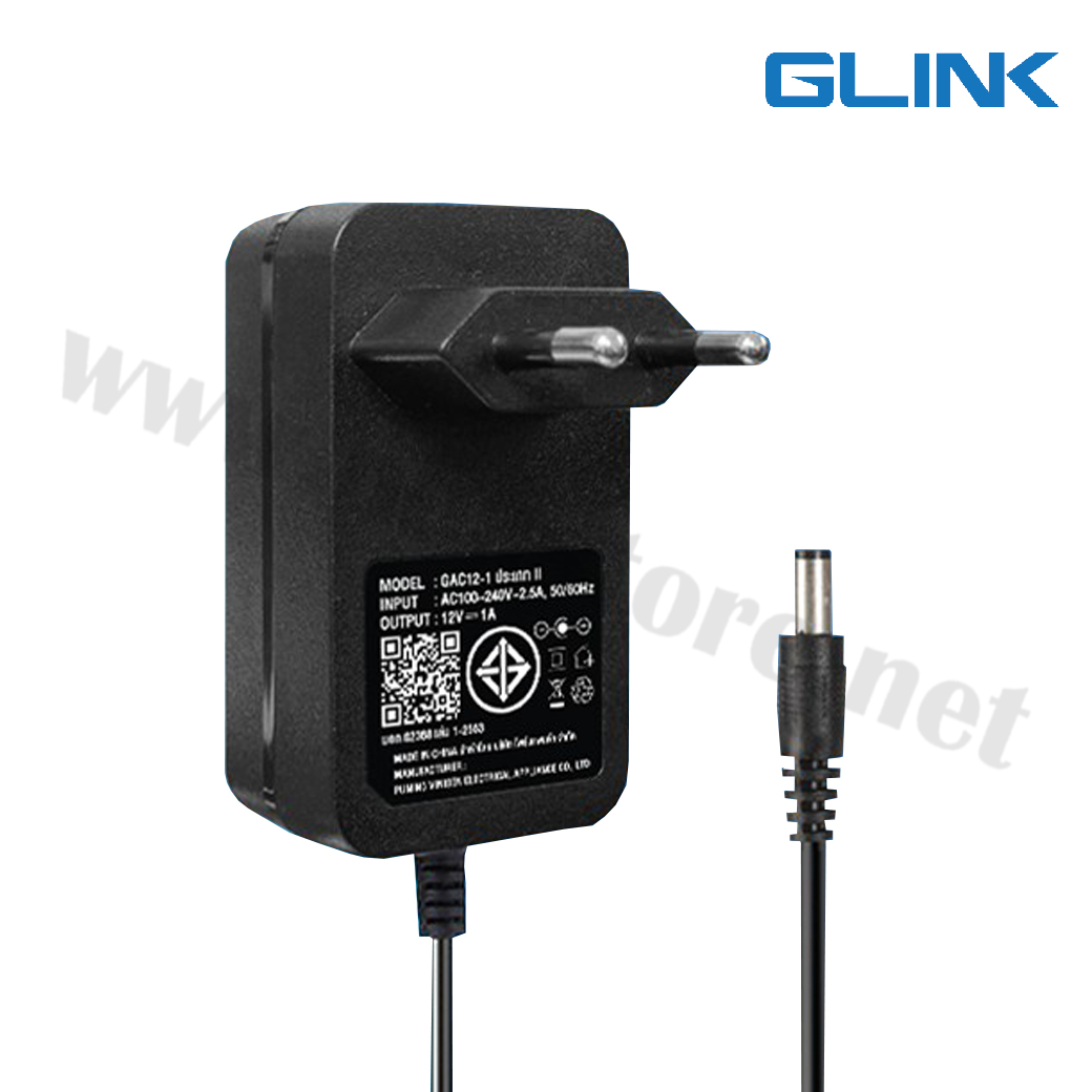 Adapter 12V 1A GLINK รุ่น GAC12-1 (มี มอก.) เป็นอะแดปเตอร์คุณภาพสูงที่ให้กระแสไฟฟ้า DC 12V กระแส 1A