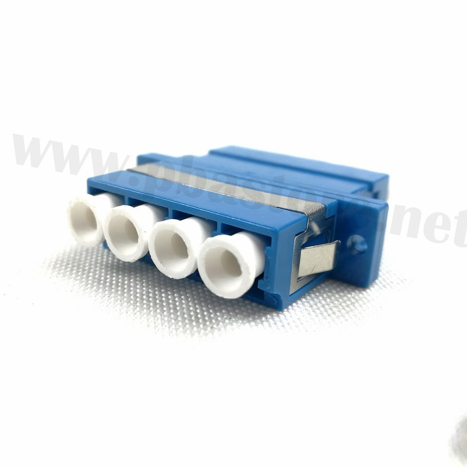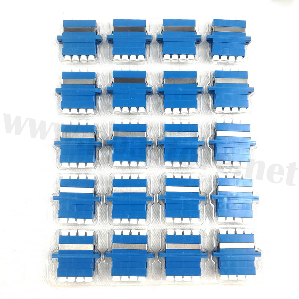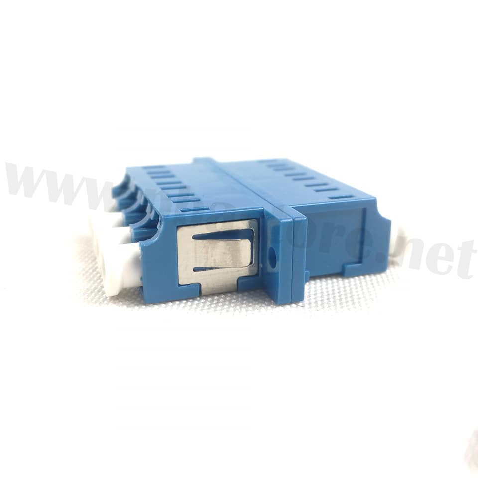 ตัวต่อสำหรับยึดในกล่องพักสายไฟเบอร์ออฟติก ระหว่างหัวไฟเบอร์ออฟติกสำหรับหัวไฟเบอร์ชนิด LC Quad (สีฟ้า) (4 ช่อง) กรณีต่อกลางสาย 4 เส้น หรือต่อกับสาย Patch Cord ก่อนเข้าอุปกรณ์เช่น Media Converter, เร้าเตอร์ FTTH และใช้ยึดเข้ากับ Snap in Plate เป็นต้น