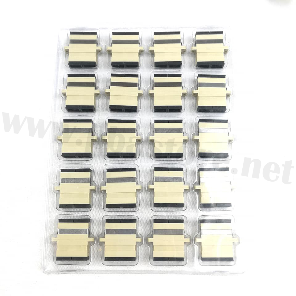 อุปกรณ์สำหรับต่อกลางระหว่างหัวไฟเบอร์ออฟติก บ่งบอกถึงความเป็นสายไฟเบอร์แบบ Multi-mode สำหรับหัวไฟเบอร์ชนิด SC-SC (สีครีม) ชนิด Duplex (สายคู่) กรณีต่อกลางสาย 2 เส้น หรือต่อกับสาย Patch Cord ก่อนเข้าอุปกรณ์เช่น Media Converter, เร้าเตอร์ FTTH และใช้ยึดเข้ากับ Snap in Plate เป็นต้น
